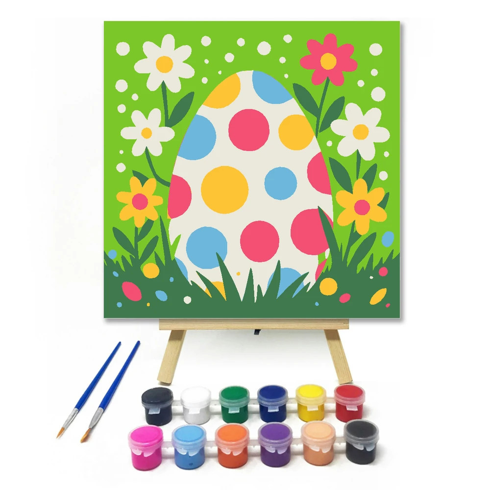 Pöttyös tojás virágokkal - gyerek számfestő készlet – 20×20 cm (Keretre feszítve)