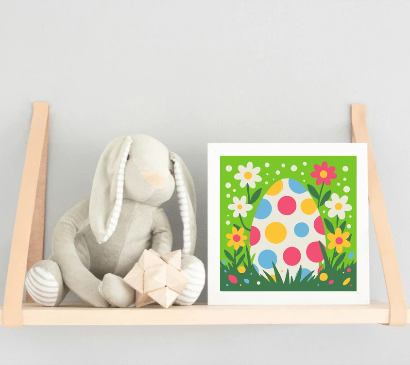 Pöttyös tojás virágokkal - gyerek számfestő készlet - Számfestő.hu - 50×50cm - Keret nélkül