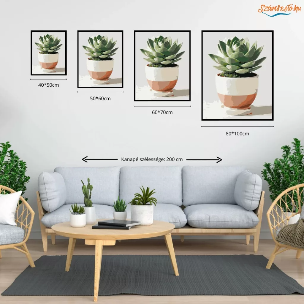 Pozsgás szobanövény - számfestő készlet – 40×50 cm (Keretre feszítve)
