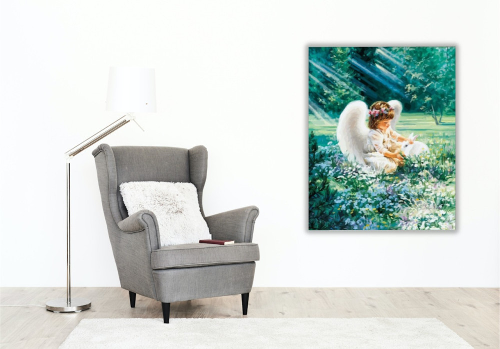A festmény békés nyugalmat áraszt, mintha egy álomszerű világba repítene minket. Egy angyalka jelenléte mesebeli történetet sejtet, ahol minden pillanat varázslatosan szép. A zöldellő rét és a lágy fények harmóniája megnyugtató hatással van a kompozícióra. Tökéletes választás lehet egy hálószobába vagy gyerekszobába, ahol a nyugalom és a béke uralkodik. A készlet tartalmazza mindazt, amire szükséged van ahhoz, hogy megalkosd ezt a tündéri jelenetet.