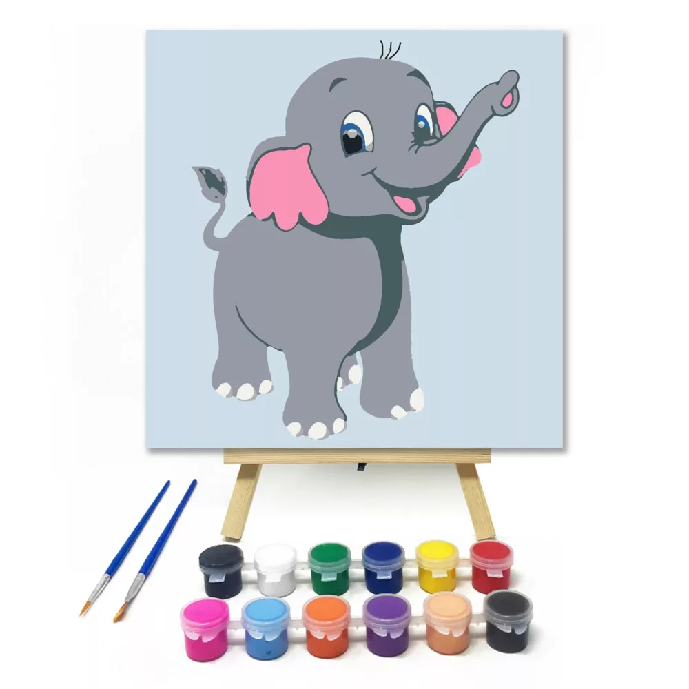 Aranyos Kiselefánt - gyerek számfestő készlet - Számfestő.hu - 30×30cm - keret nélkül