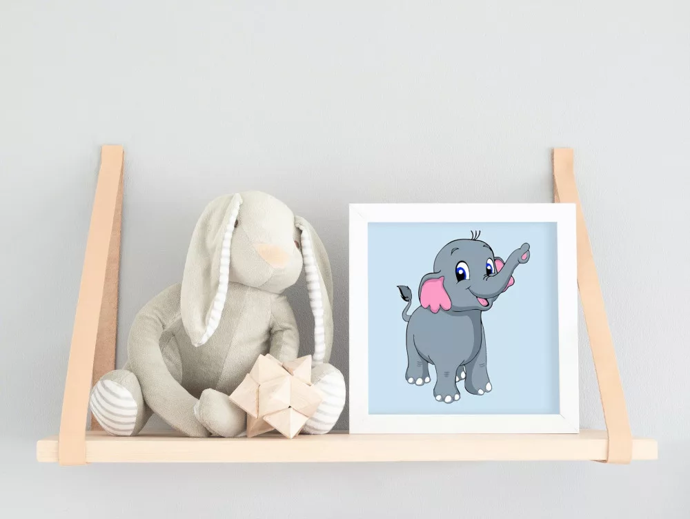 Ez a kép egy bájos kiselefántot ábrázol, aki mosolyogva integet a hosszú ormányával. A vidám szürke és rózsaszín színek barátságos hangulatot varázsolnak. Tökéletes választás a gyerekek első kreatív kalandjához!