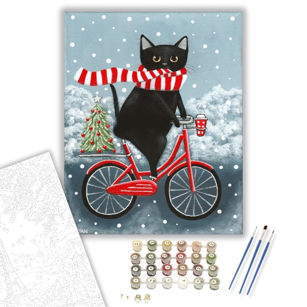 Számfestő készlet – Bicikliző Macska – 80×100 cm (Keretre feszítve)