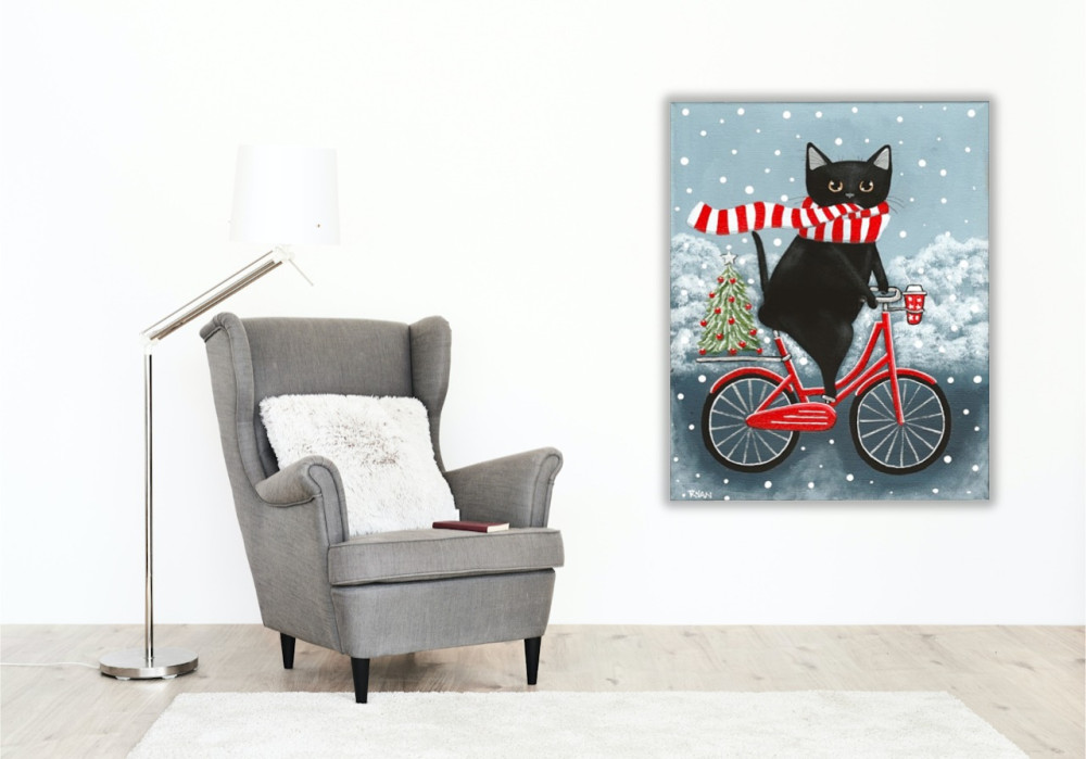 Bicikliző Macska - számfestő készlet - Számfestő.hu - 80×100cm - keretre feszítve