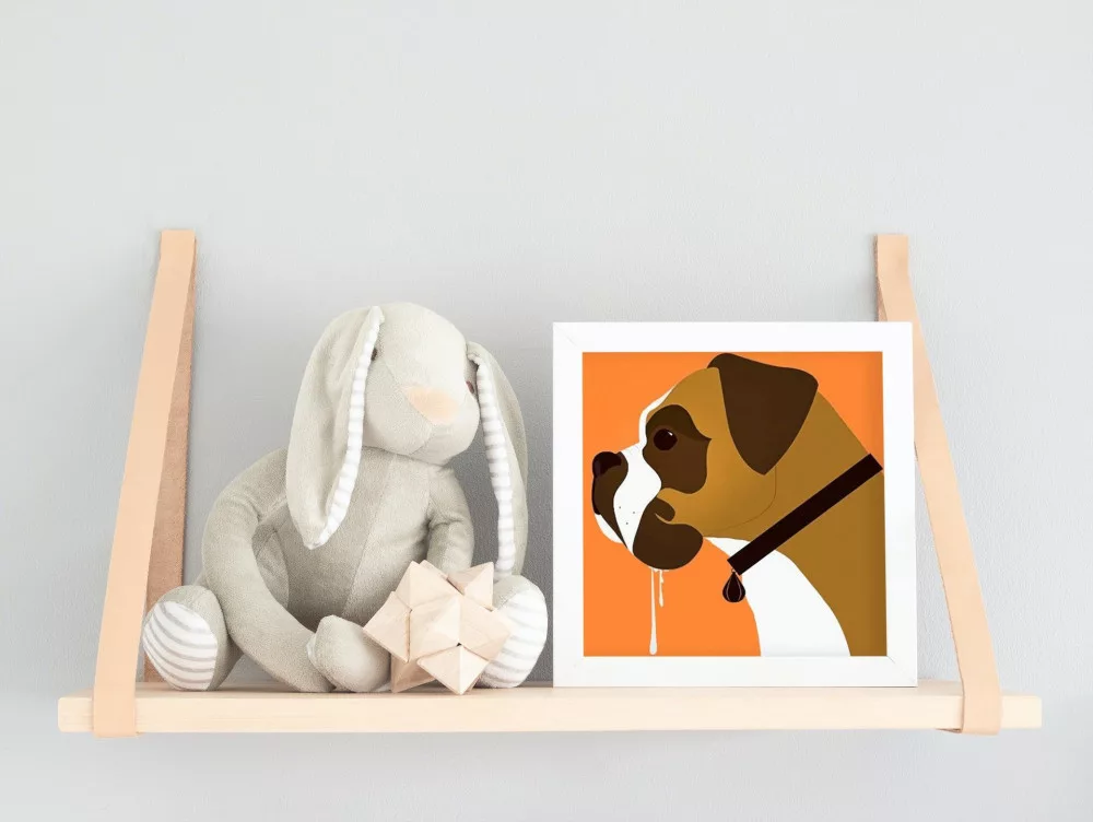 Ez a kép egy bájos boxert ábrázol, aki vidáman nézelődik a napsütéses háttér előtt. A meleg narancssárga szín és a kutyus kedves arckifejezése minden gyereket alkotásra hív. Tökéletes kezdés a kicsik festői kalandjaihoz!