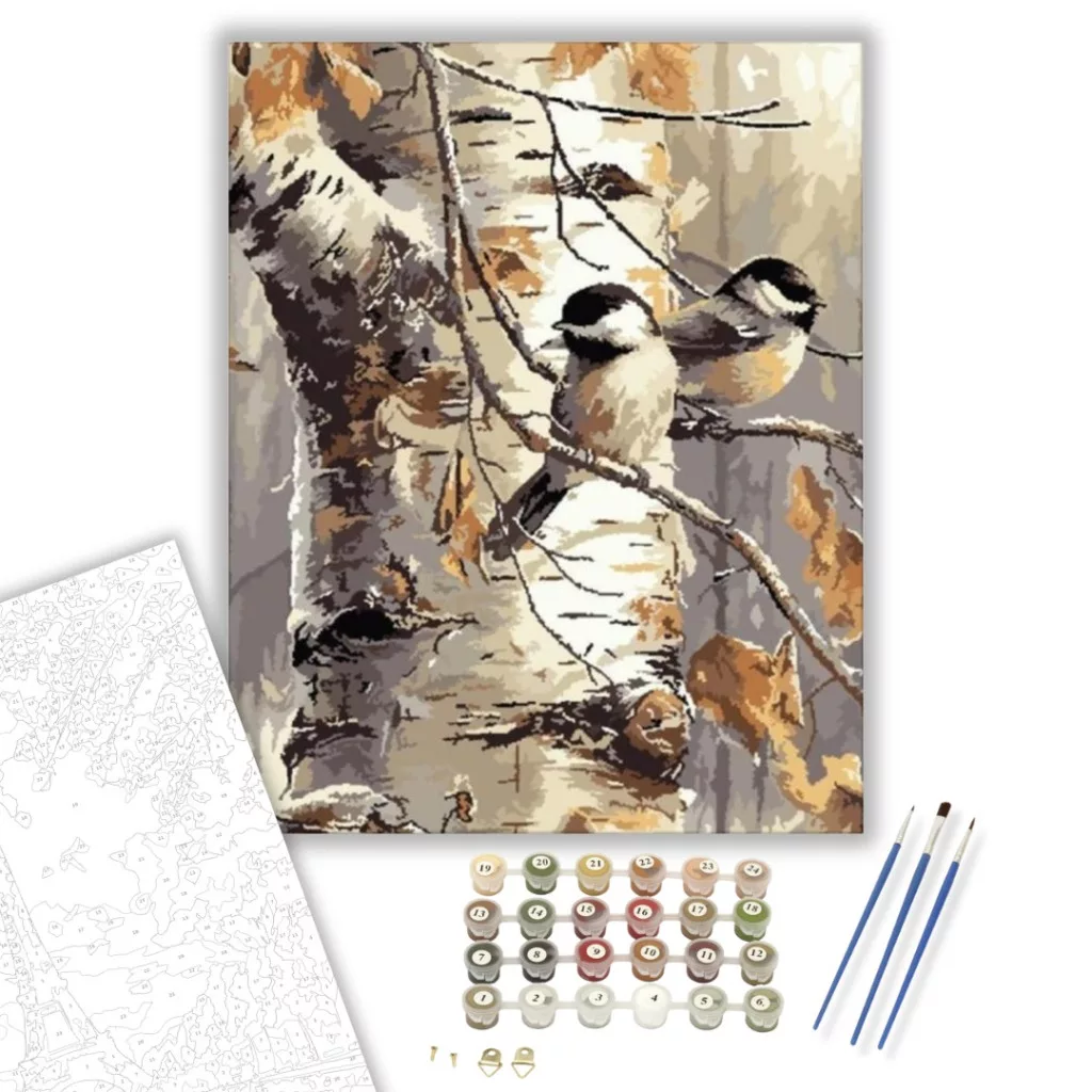 A festmény egy nyugodt, őszi hangulatot áraszt, amelyben a természet csendje dominál. A kép két kis madár történetét meséli el, ahogy békésen pihennek egy faágon. A barnás és szürkés árnyalatok lágyan keverednek, melegséget és harmóniát sugározva. Tökéletes választás lehet egy nappaliba vagy olvasósarokba, ahol a természet közelségét szeretnénk megidézni. A készlet tartalmaz mindent, amire szükséged van ahhoz, hogy saját kezűleg alkoss csodát.