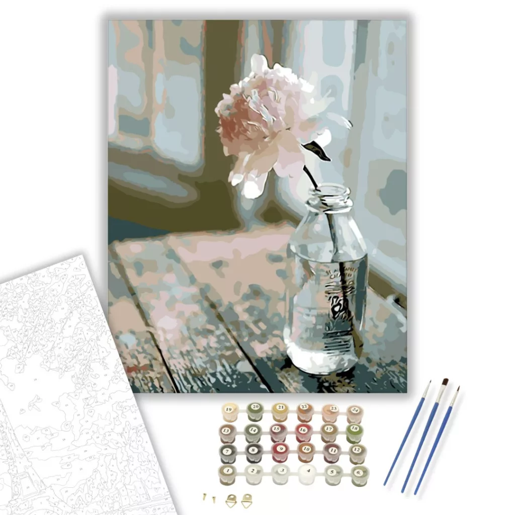 Ez a festmény finom eleganciával és nyugalommal tölti meg a teret, mintha egy pillanatra megállt volna az idő. A kép egy történetet mesél el egy magányos virágról, amely csendesen tündököl egy üvegben. A lágy pasztellszínek és a háttér meleg tónusai harmonikusan emelik ki a kompozíciót. Ideális választás lehet nappalikba vagy hálószobákba, ahol az intimitás és a nyugalom fontos szerepet játszik. A készlet tartalmaz minden szükséges eszközt, hogy életre kelthesd ezt a csodás jelenetet.