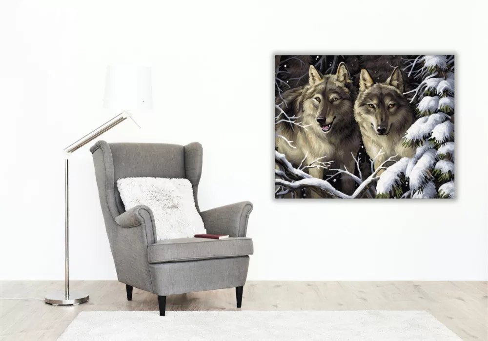 Farkasok őrjáraton - számfestő készlet – 40×50 cm (Keret nélkül)