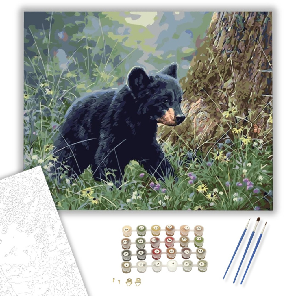 Felfedező medvebocs - számfestő készlet – 50×60 cm (Keret nélkül)