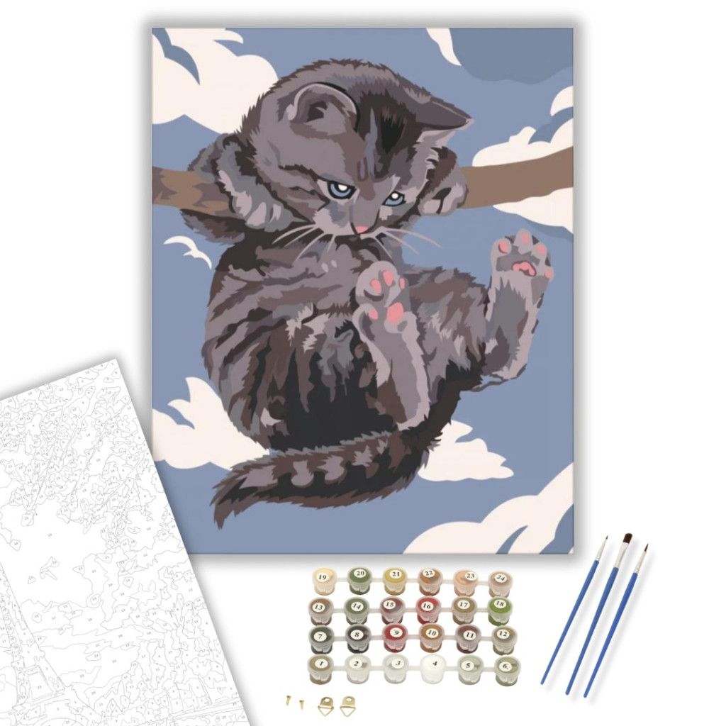 Számfestő készlet – Játszó cica – 80×100 cm (Keret nélkül)