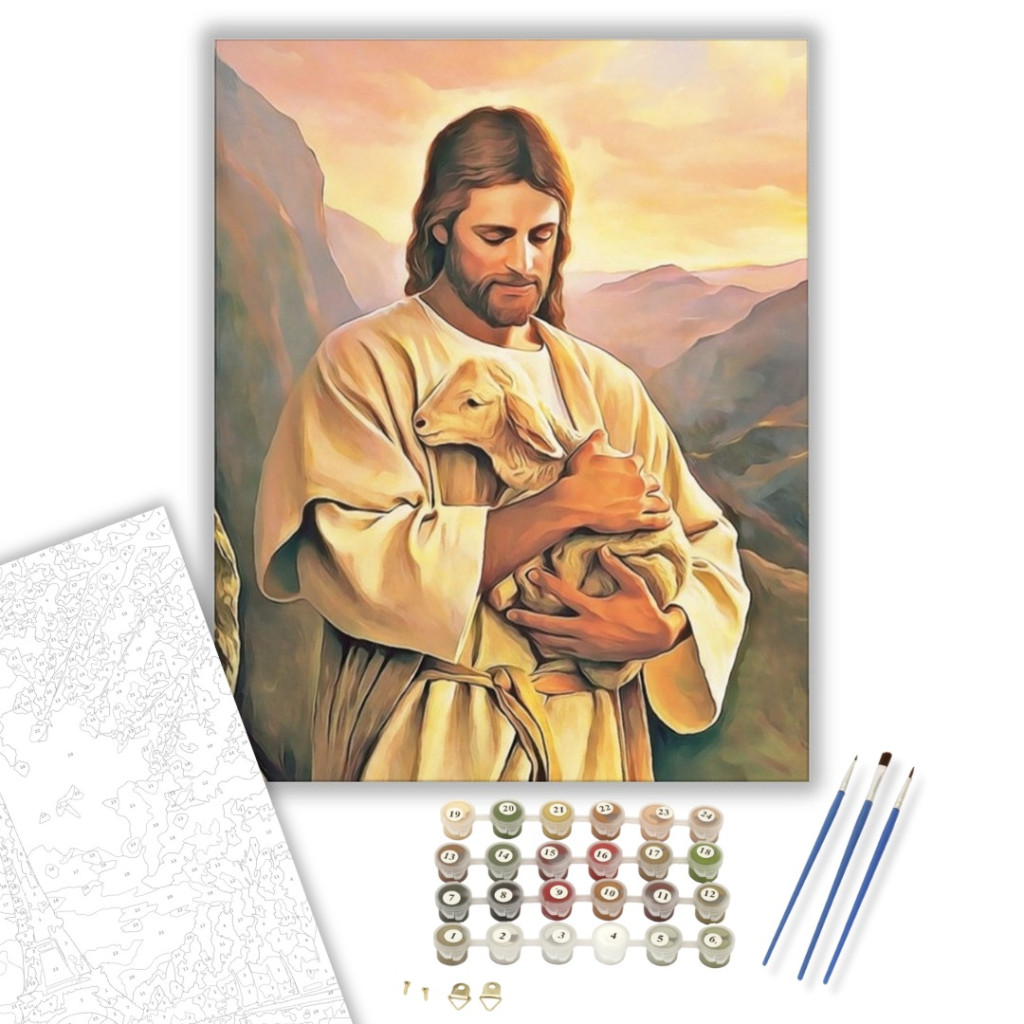 Számfestő készlet – Jézus Báránya - húsvéti számfestő készlet – 50×60 cm (Keretre feszítve)