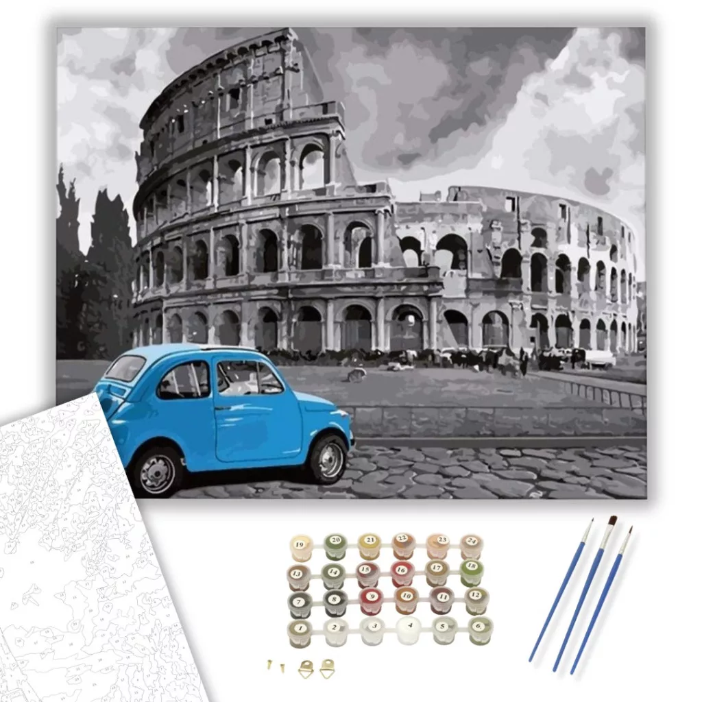 Számfestő készlet – Kék autó a Kolosszeumnál – 80×100 cm (Keret nélkül)