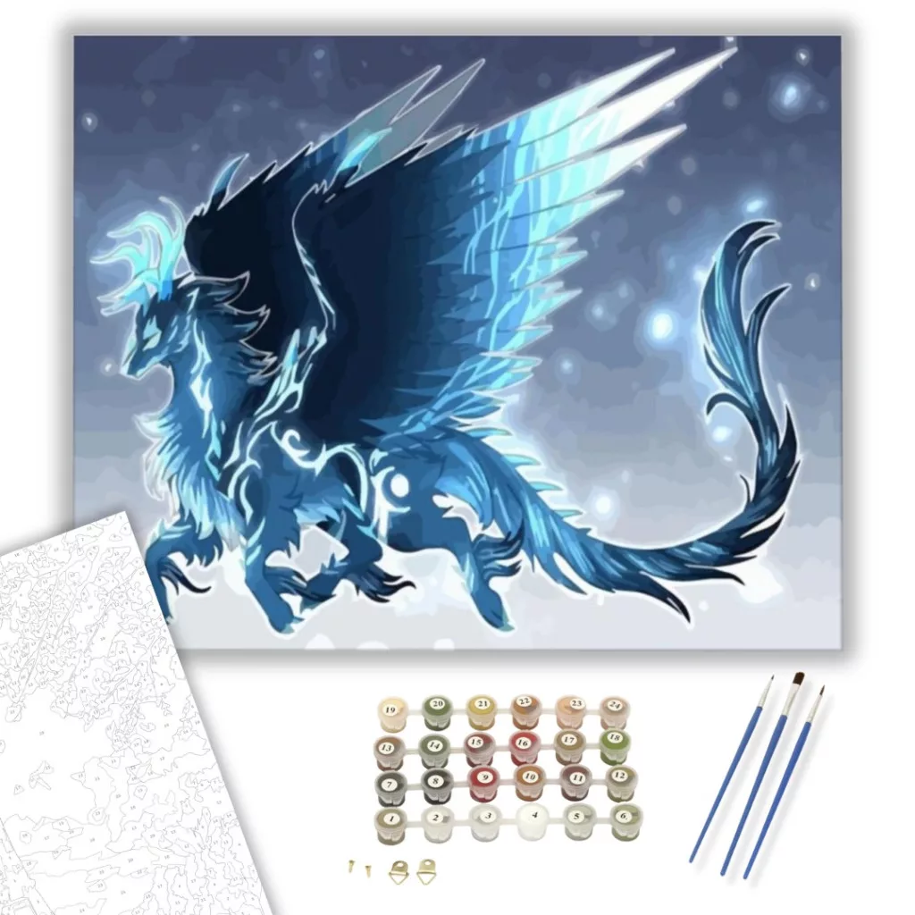Számfestő készlet – Kék sárkány – 60×70 cm (Keretre feszítve)