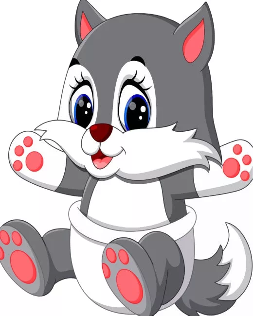 Ez a kép egy bájos kis farkaskát ábrázol, aki vidáman integet a barátainak. A színes mancsai és mosolygós pofija garantáltan mosolyt csal mindenki arcára. Tökéletes választás a gyerekek első festős kalandjához!