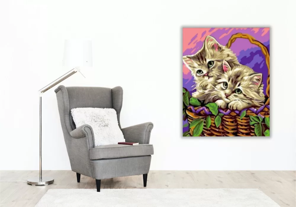 Számfestő készlet – Kiscicák a kosárban – 40×50 cm (Keret nélkül)