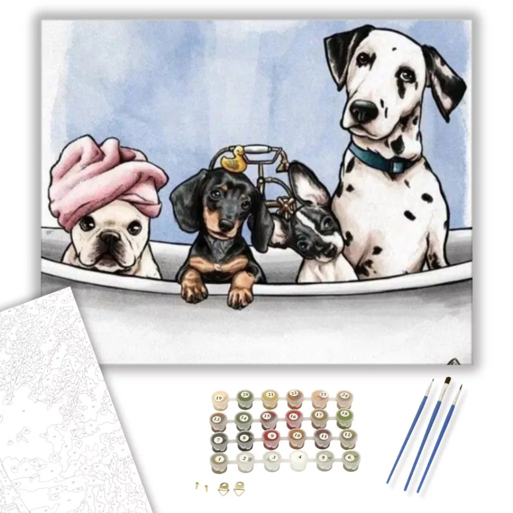Számfestő készlet – Kutyák A Kádban – 40×50 cm (Keret nélkül)