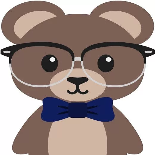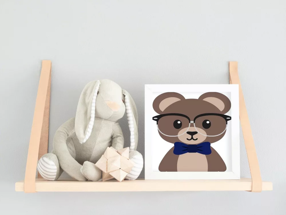 Ez a kép egy cuki mackót ábrázol, aki szemüvegben és csokornyakkendőben mosolyog rád. A barátságos barna és kék színek vidám hangulatot árasztanak. Tökéletes választás a gyerekek első kreatív kalandjához!