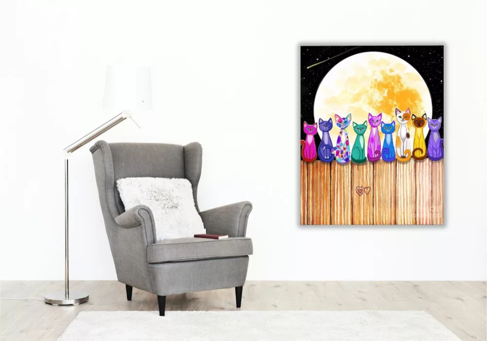 Macskák a Holdfényben - számfestő készlet - Számfestő.hu - 50×60cm - keretre feszítve