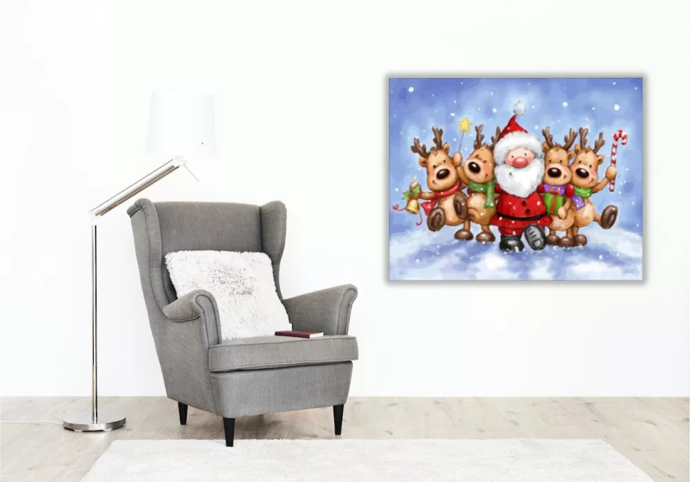 Mikulás tánc szarvasokkal - számfestő készlet - Számfestő.hu - 60×70cm - keretre feszítve