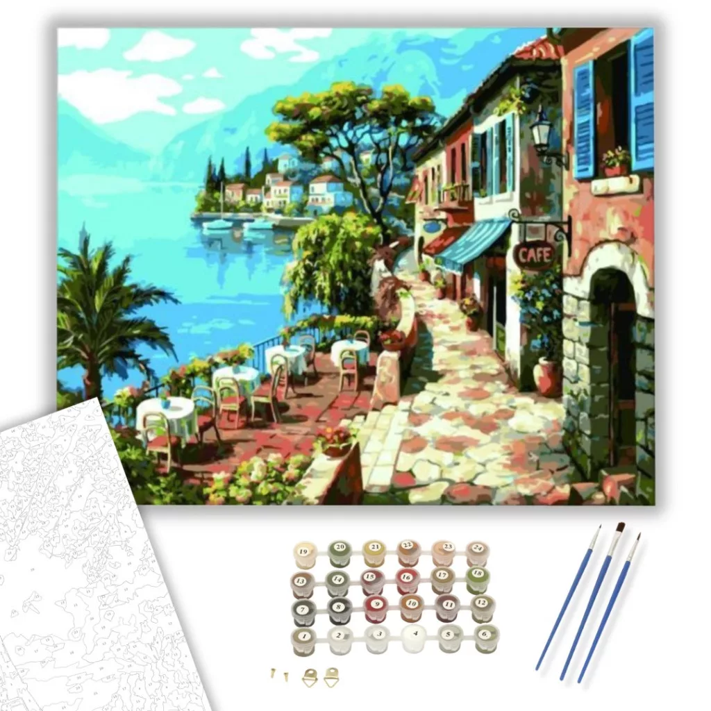 Számfestő készlet – Olasz Kávézó Terasz – 80×100 cm (Keretre feszítve)
