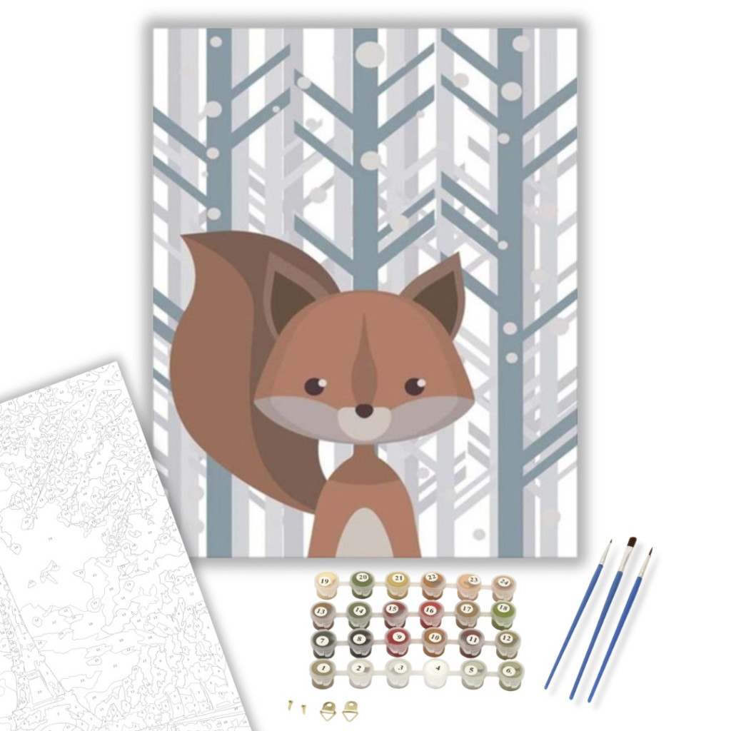 A festmény barátságos és játékos hangulatot áraszt, amely azonnal mosolyt csal az arcodra. Egy titokzatos erdő mélyén, ahol a természet csendje uralkodik, egy kedves róka várja a kalandokat. A háttérben lévő fák geometrikus mintázata modern és letisztult érzetet ad a kompozíciónak. Ideális választás gyerekszobába vagy kreatív sarokba, ahol inspirációra van szükség. A készlet tartalmazza az összes szükséges eszközt, hogy saját kezűleg alkothass meg egy varázslatos világot.
