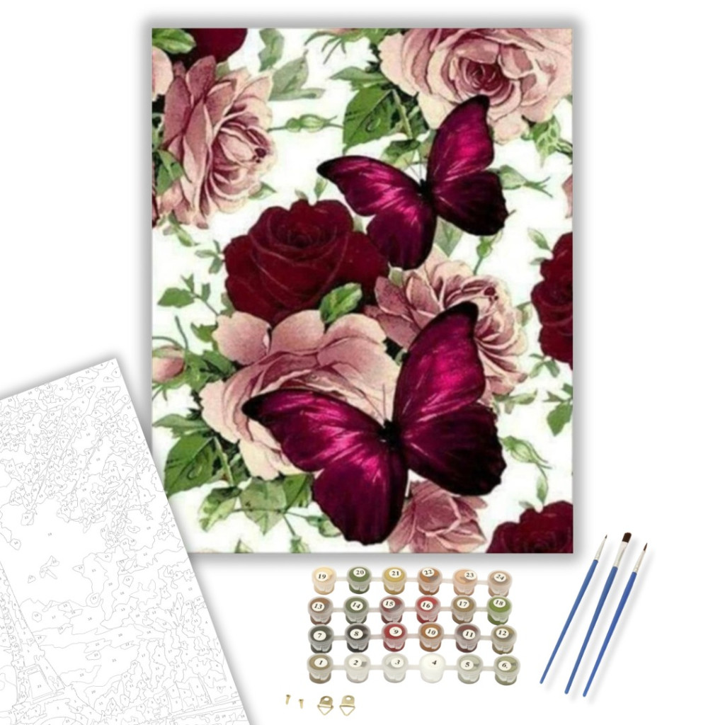 Rózsa És Pillangó - számfestő készlet - Számfestő.hu - 40×50cm - keretre feszítve