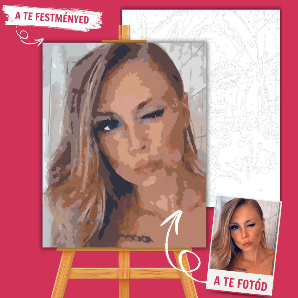 A legszemélyesebb számfestő, amit valaha rendeltél: egyedi portré saját fotód alapján. Bármilyen pillanatot megörökíthetsz — családi képet, páros fotót, kedvenc helyedet vagy életetek legfontosabb eseményét. Mi a feltöltött fotóból részletesen feldolgozott számfestő készletet készítünk, amit Te magad kelthetsz életre a festékekkel!