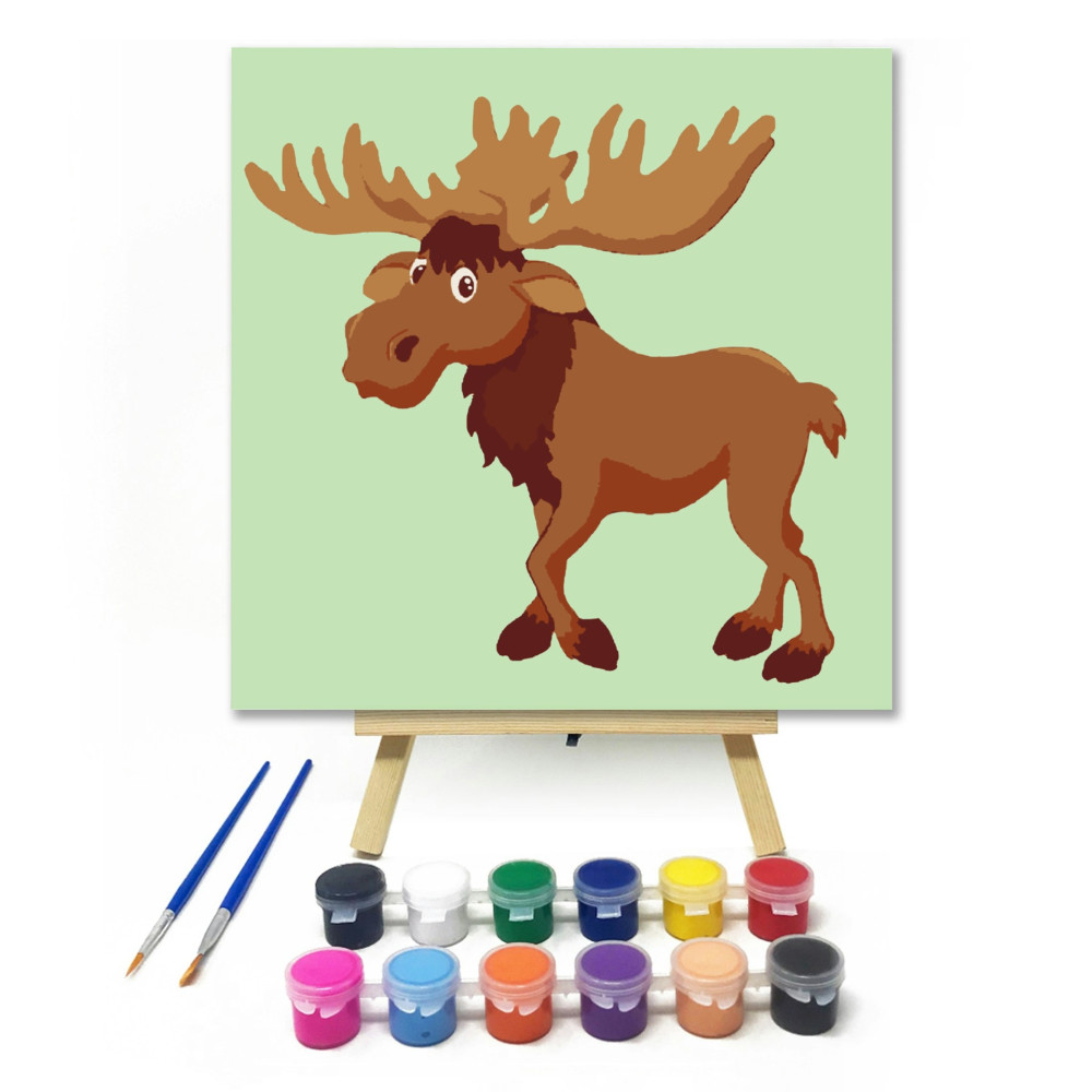 Szarvas - gyerek számfestő készlet – 40×40 cm (Keretre feszítve)