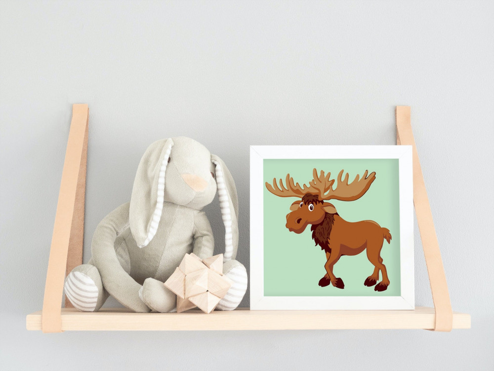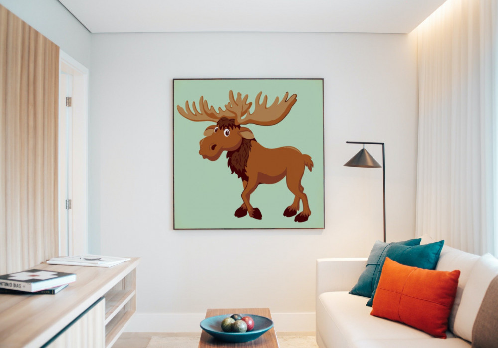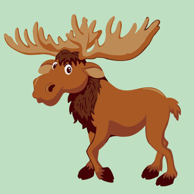 Ez a kép egy barátságos szarvast ábrázol, aki kíváncsian néz körül az erdőben. A meleg barna és zöld színek vidám hangulatot sugároznak. Tökéletes választás a gyerekek első kreatív kalandjához!