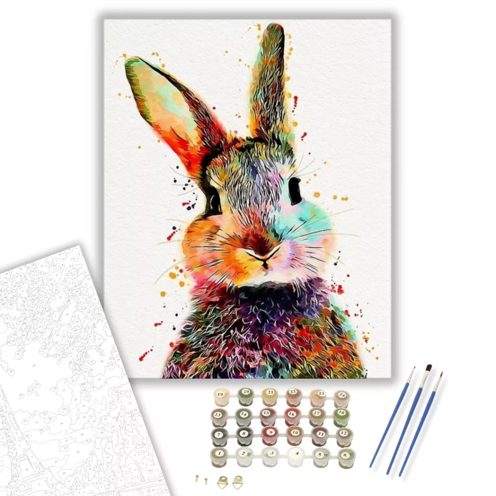 Számfestő készlet – Színes Nyúl - húsvéti számfestő készlet – 50×60 cm (Keret nélkül)