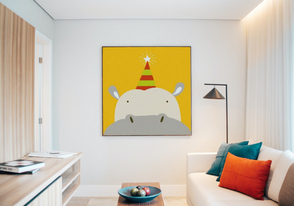 Ez a vidám kép egy szülinapi bulira készülő vízilovat ábrázol, aki mókásan kandikál elő a háttérből. A sárga és piros színek vidámságot sugároznak, és tökéletesek a gyerekek első kreatív kalandjához. Keltsd életre a vízilovat és fedezd fel a színek világát!