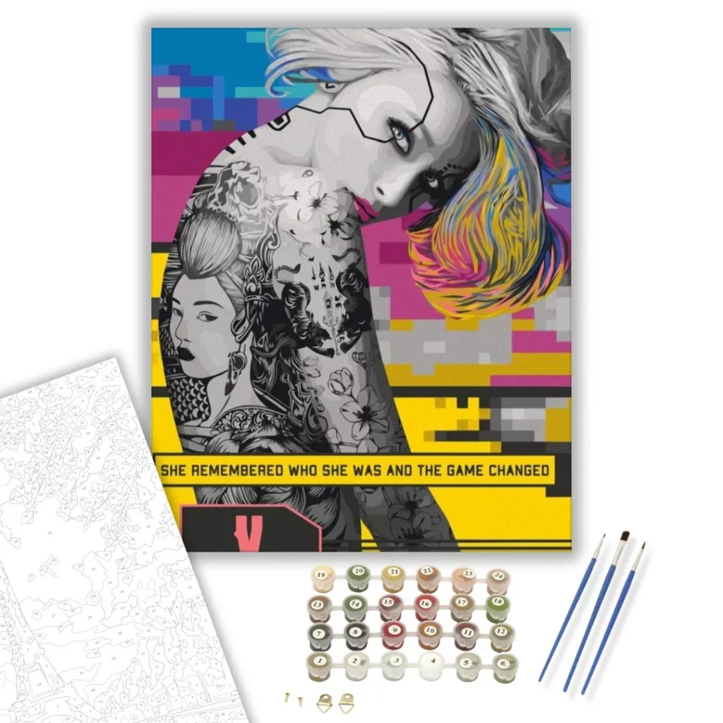 Számfestő készlet – Tetovált Lány – 60×70 cm (Keret nélkül)