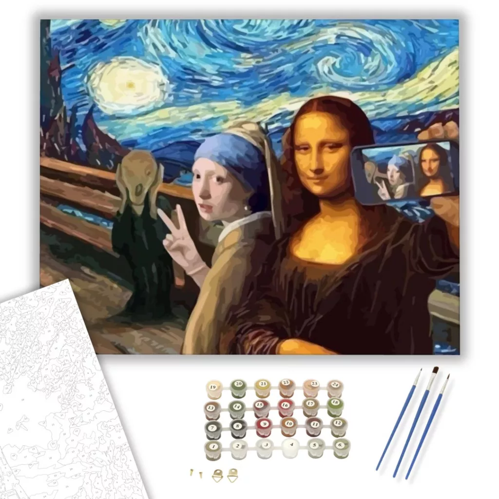 Világhírű szelfi - számfestő készlet – 80×100 cm (Keretre feszítve)