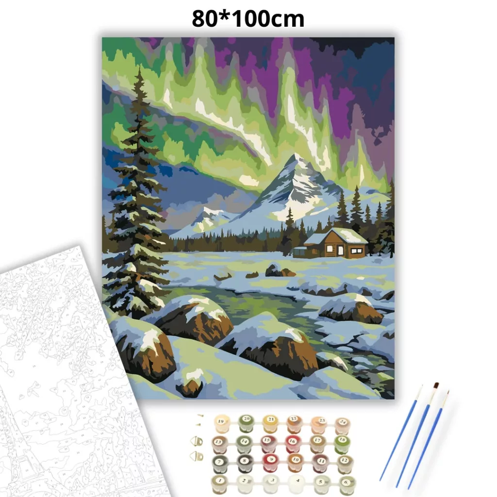 Ragyogó sarki fény - számfestő készlet – 80×100 cm (Keret nélkül)