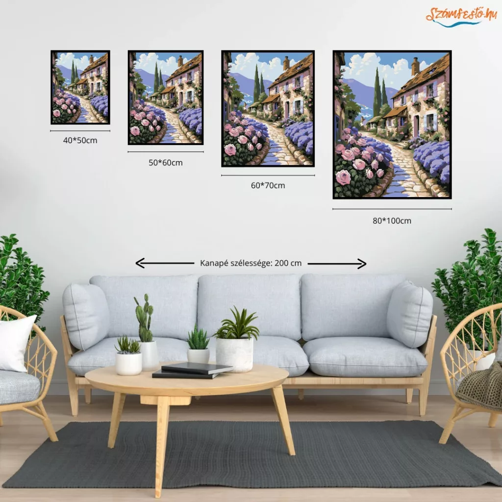 Rózsás falusi utca - számfestő készlet - Számfestő.hu - 40×50cm - Keretre feszítve
