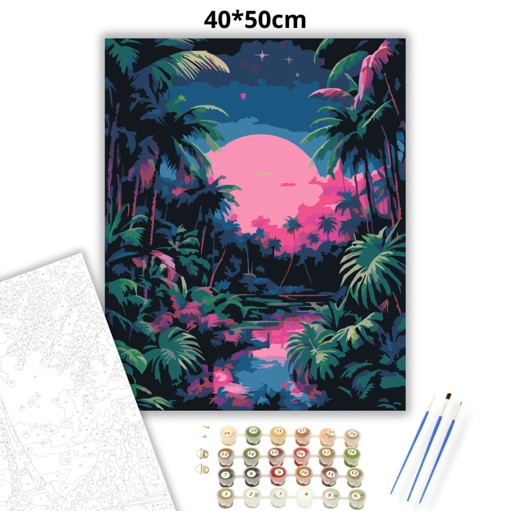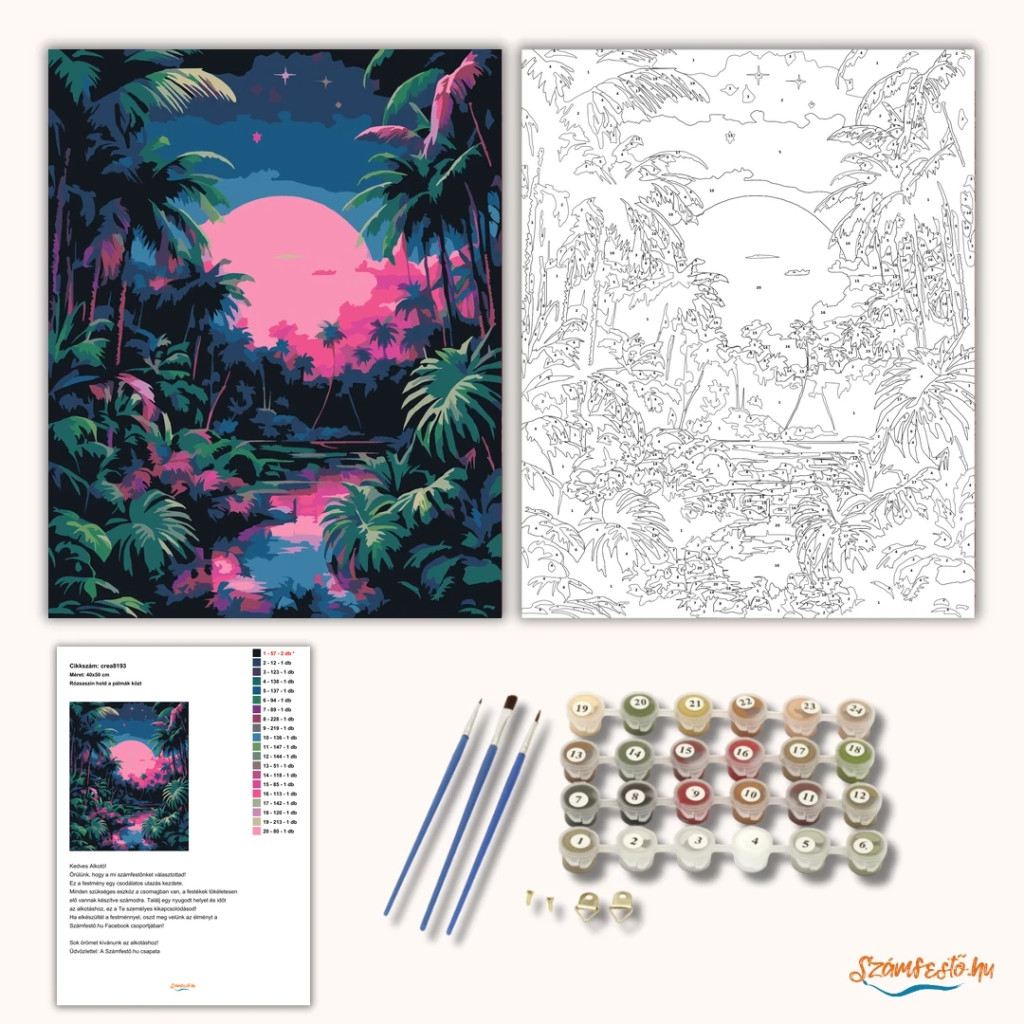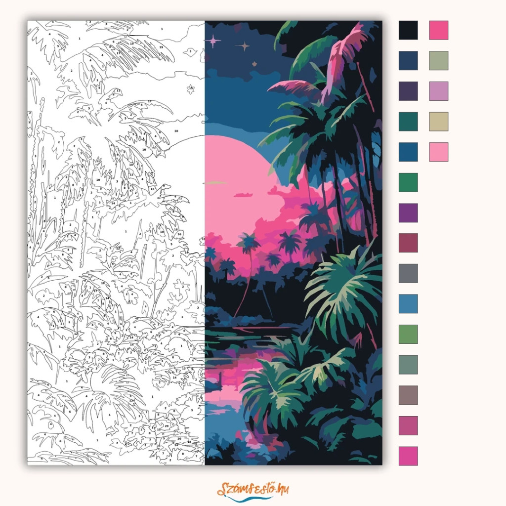 Számfestő készlet - Rózsaszín hold a pálmák közt