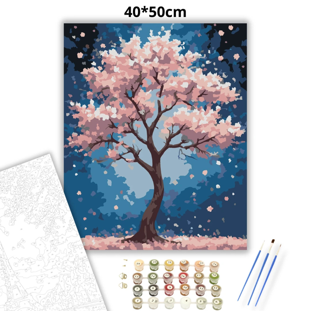 Rózsaszín lombkorona - számfestő készlet - Számfestő.hu - 40×50cm - Keret nélkül
