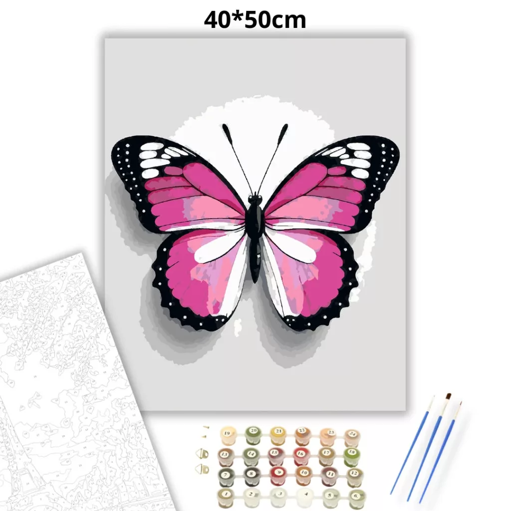 Rózsaszín pillangó - számfestő készlet – 40×50 cm (Keret nélkül)