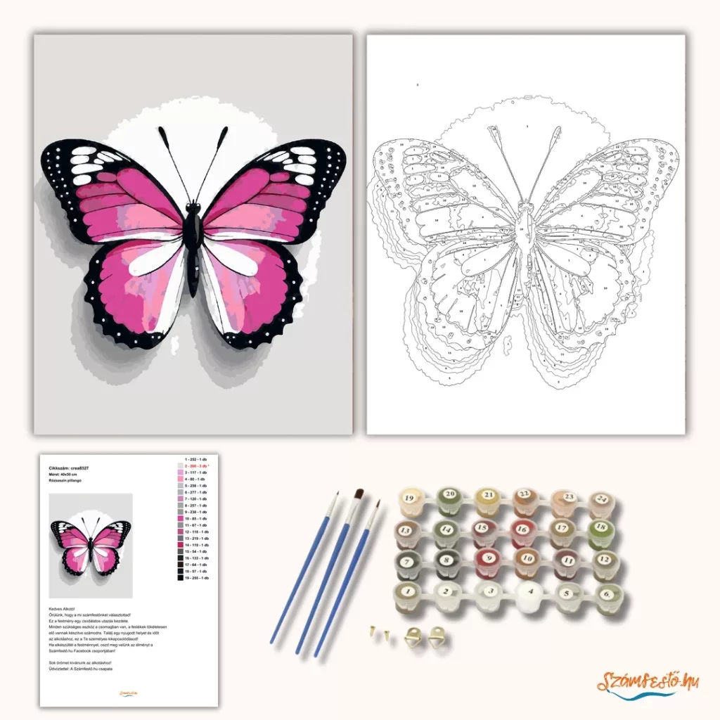 Rózsaszín pillangó - számfestő készlet
