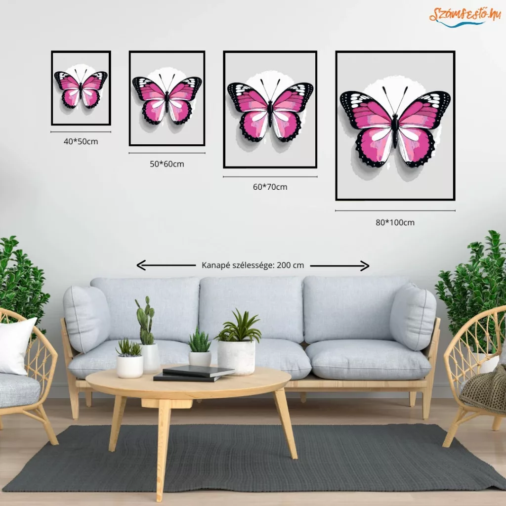 Rózsaszín pillangó - számfestő készlet - Számfestő.hu - 40×50cm - Keret nélkül