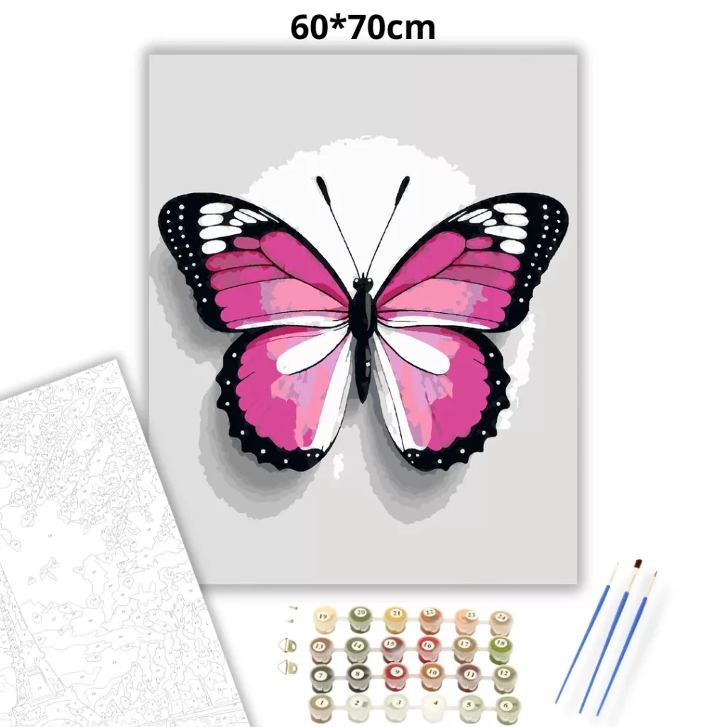 Rózsaszín pillangó - számfestő készlet – 60×70 cm (Keretre feszítve)