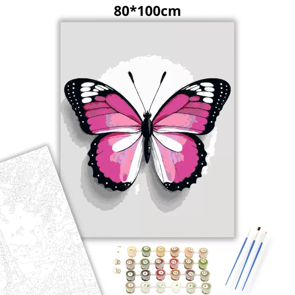 Rózsaszín pillangó - számfestő készlet – 80×100 cm (Keret nélkül)