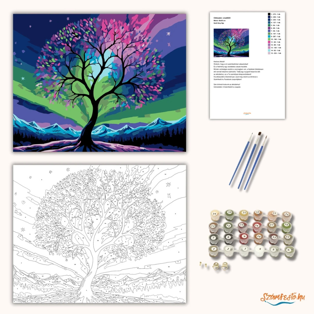 Sarki fény fája - számfestő készlet - Számfestő.hu - 60×70cm - Keret nélkül
