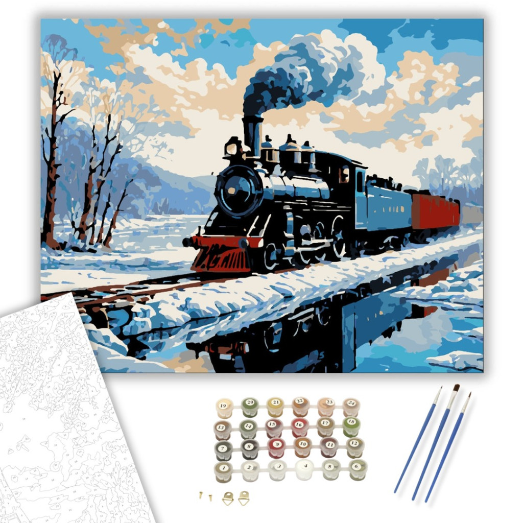 Téli Gőzös Utazás - számfestő készlet – 40×50 cm (Keret nélkül)