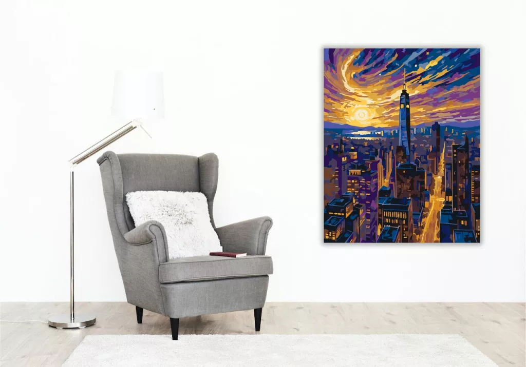 Számfestő készlet – Városi Csillagfény Éjszakája – 40×50 cm (Keret nélkül)