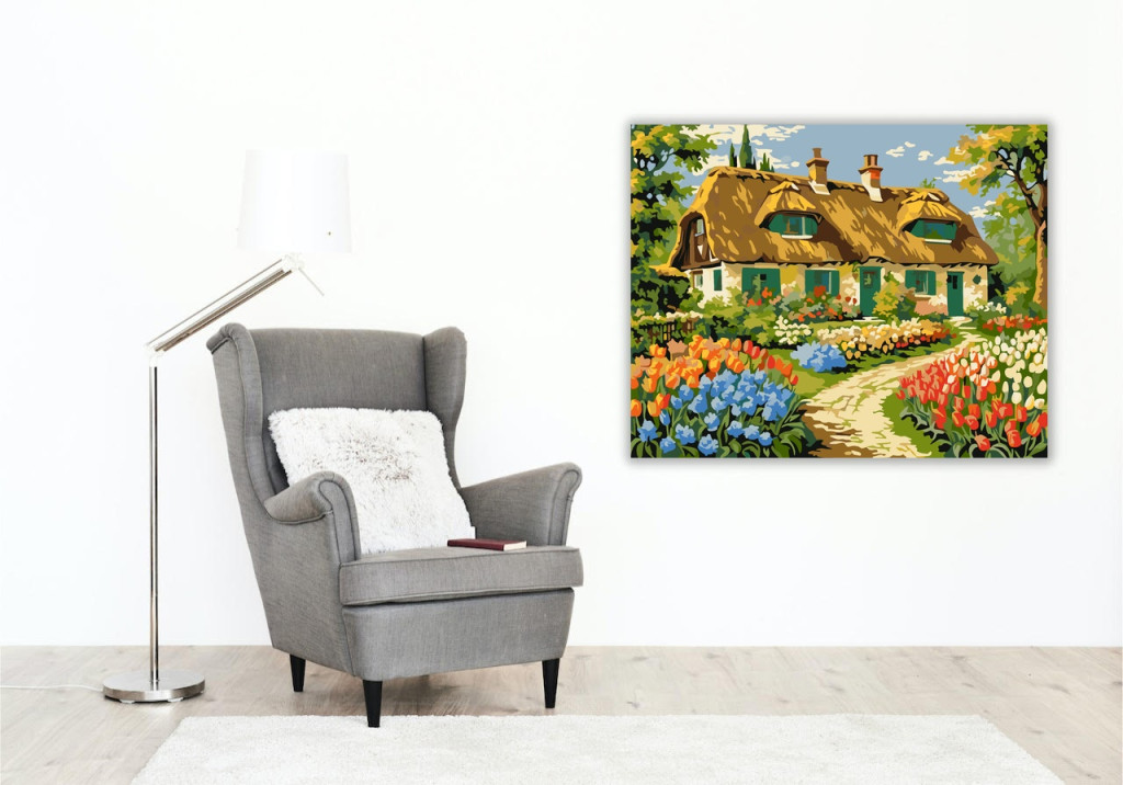 Számfestő készlet – Virágos Kunyhó Idillje – 50×60 cm (Keret nélkül)