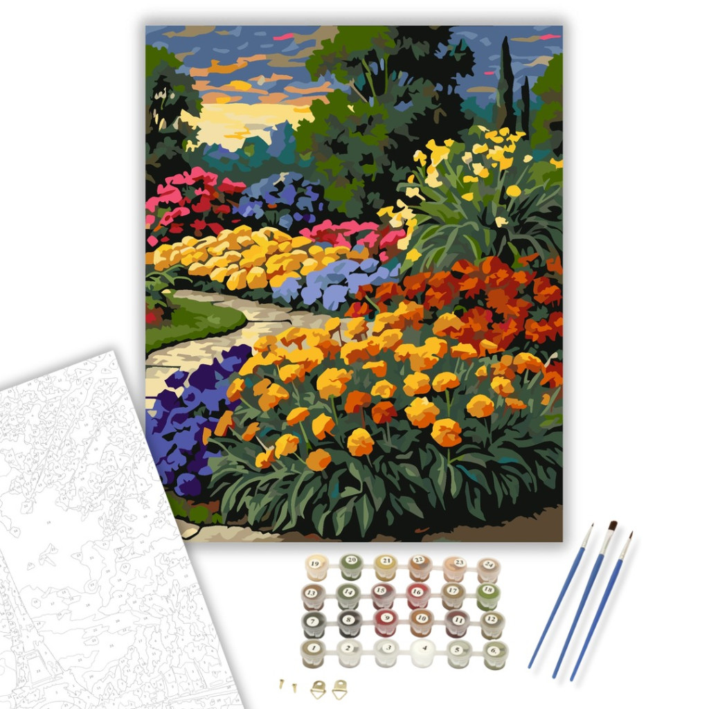 Számfestő készlet – Naplemente Virágoskert Harmóniája – 40×50 cm (Keret nélkül)