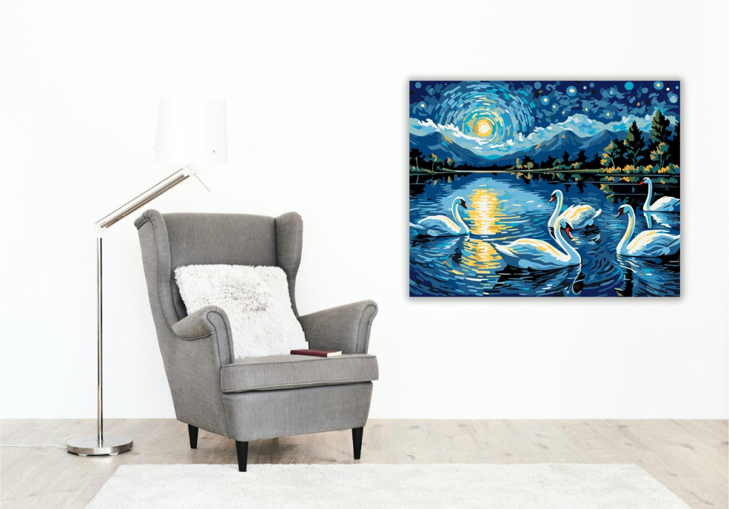 Éjszakai Hattyúk Tánca - számfestő készlet – 50×60 cm (Keret nélkül)