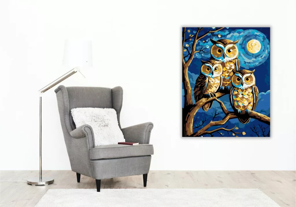 Számfestő készlet – Holdfényes Baglyok Harmóniája – 40×50 cm (Keret nélkül)