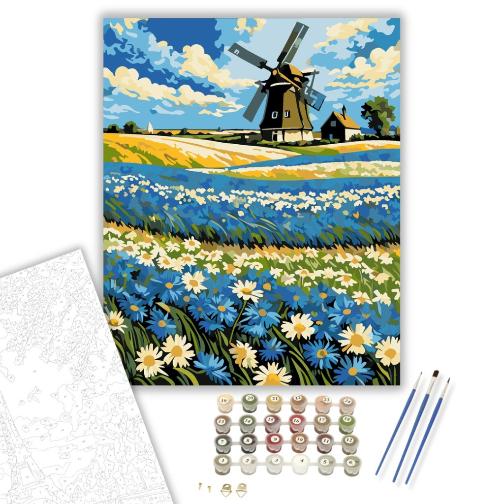 Számfestő készlet – Szélmalom Virágmező Álma – 80×100 cm (Keret nélkül)